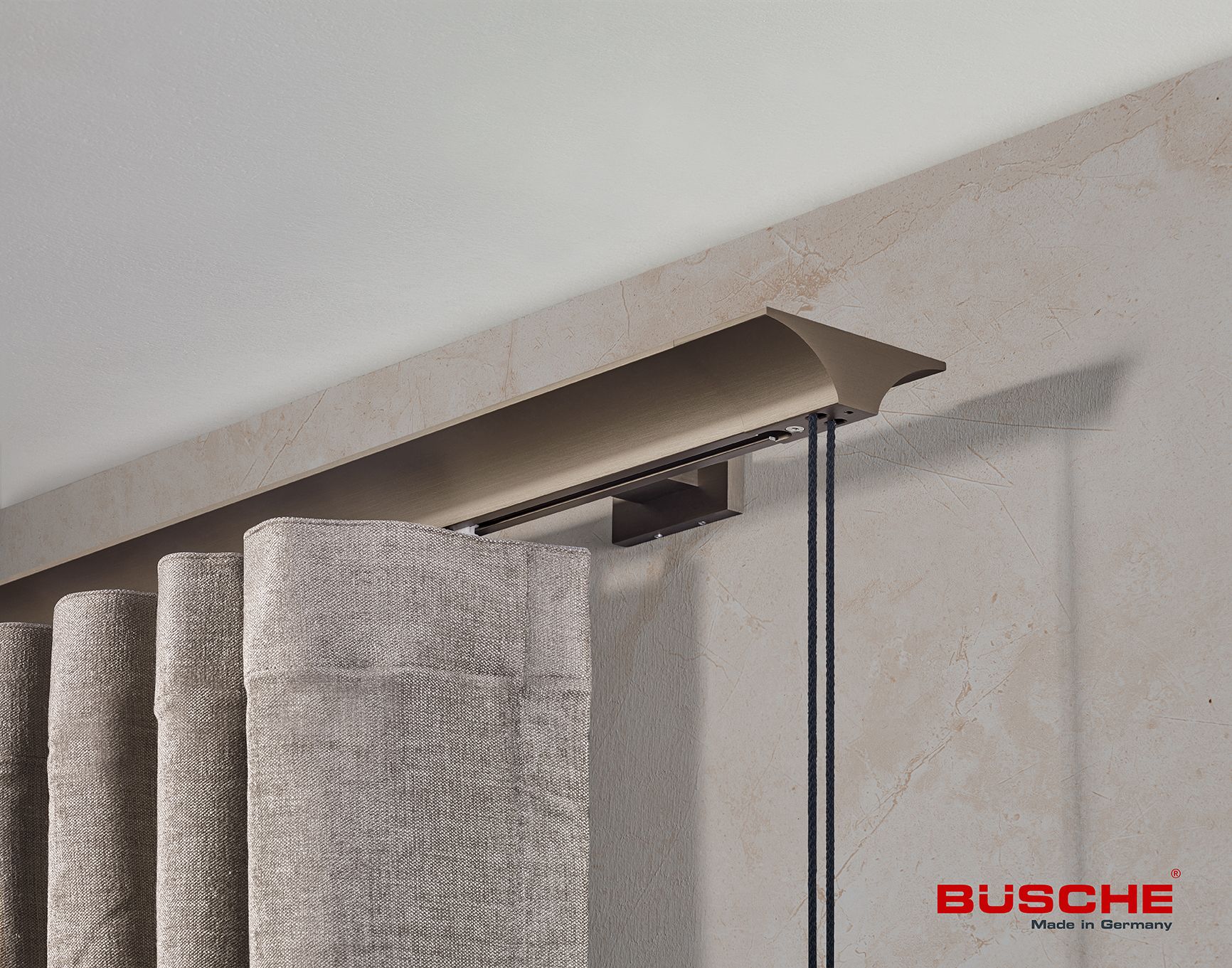 Motorisierte BÜSCHE® Vorhangprofile zeichnen sich aus durch höchste Flexibilität. Jede Garnitur wird auf Maß gefertigt.
